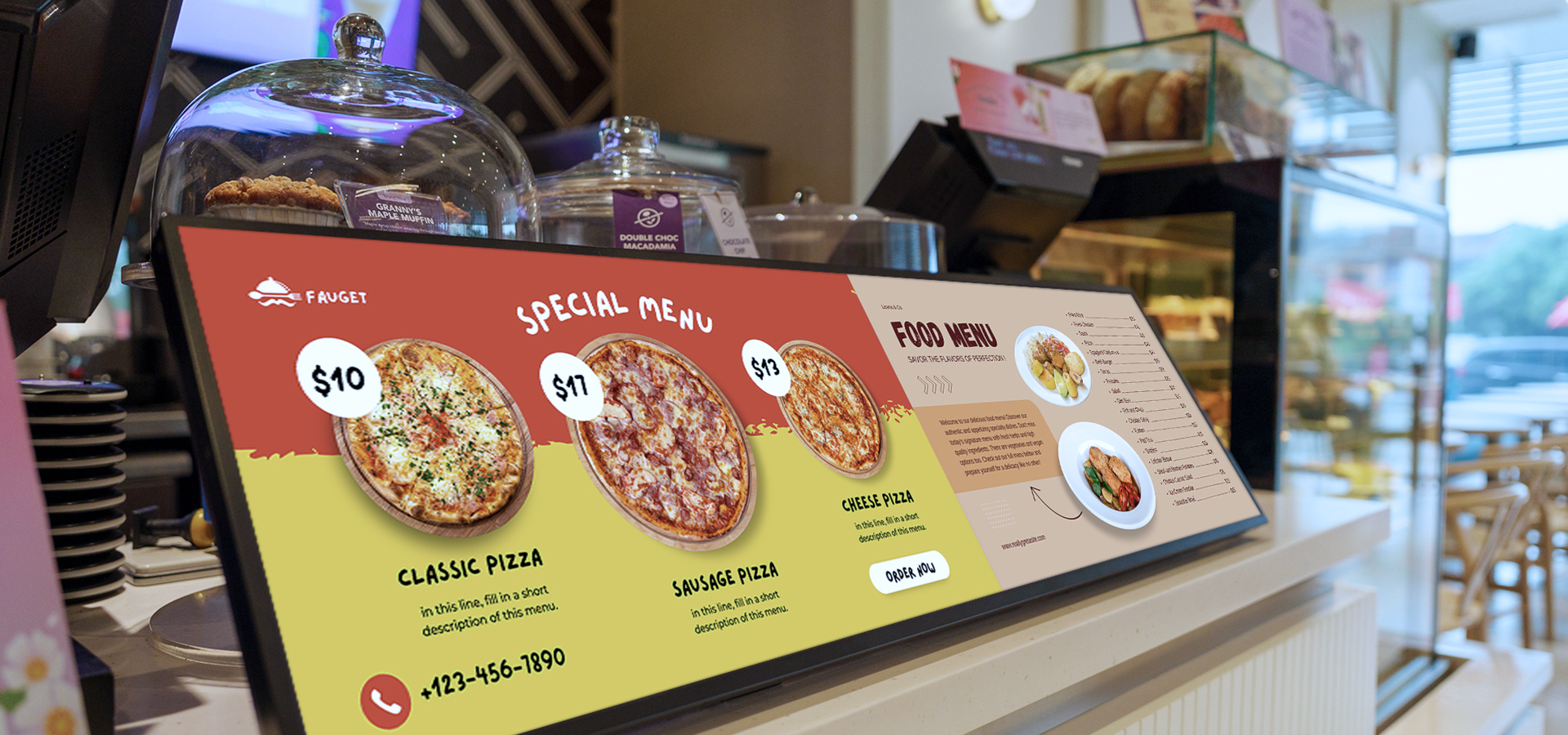 - Restoranlar, oteller, alışveriş merkezleri ve eğlence mekanları için özelleştirilmiş görsel içeriklerle ürünlerinizi doğru şekilde tanıtın.
